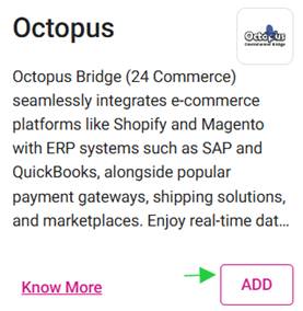 Under the Online Order section for Octopus select Add.