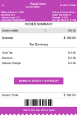Ready for pickup - Once the unfulfilled order is packaged, it is marked as Ready for Pickup for pickup orders.