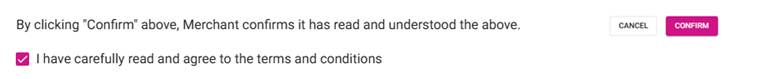 On the Disclaimer page that appears: after selecting the Terms and Conditions box at the bottom left, click Confirm at the upper right. After that, you are redirected to the Configure and Manage Integrations page.