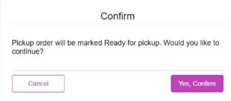 Click Mark as Ready for Pickup. The Confirm pop-up appears.