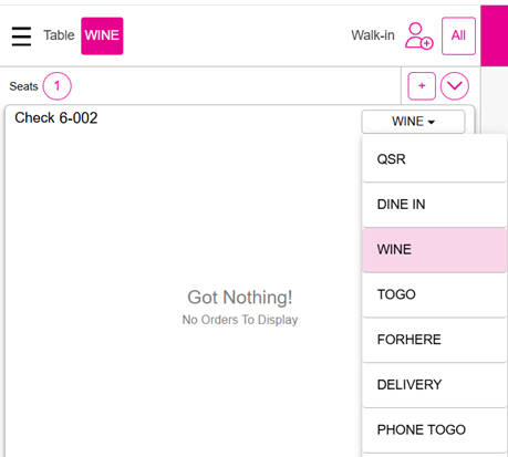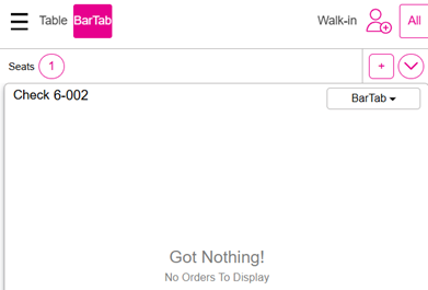 The Bar Tab order type will display the new Floating Tab name on the POS.