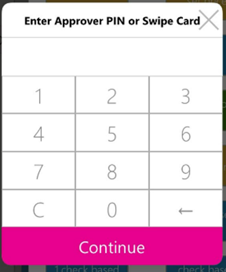 - If the Employee does not have access, the 'Enter Approver PIN or Swipe Card' pop-up will appear, containing a number pad for entering the PIN of someone who has the permissions for approval.