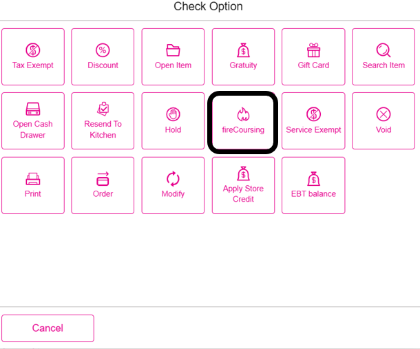 Note: Before selecting Fire Coursing, the ordered Menu Item(s) must be sent to the Kitchen.