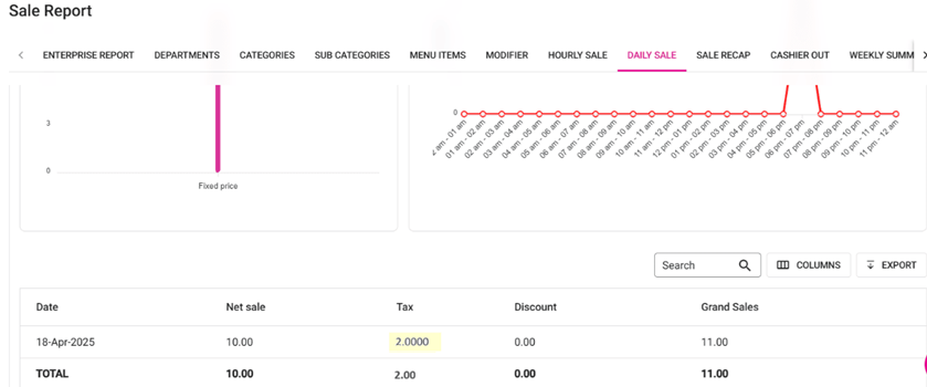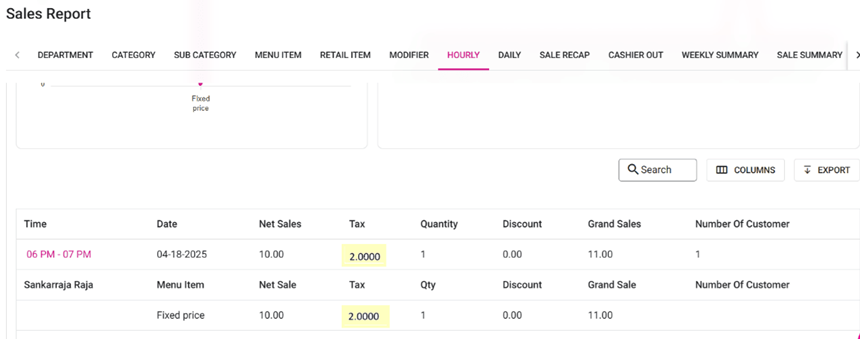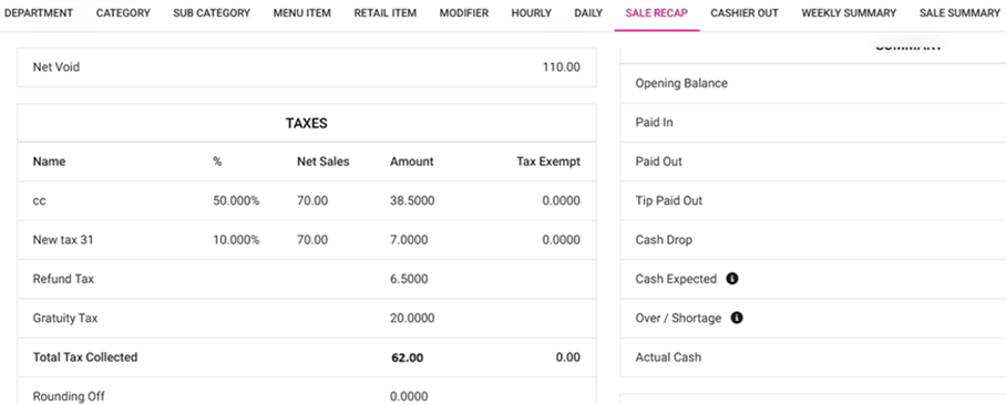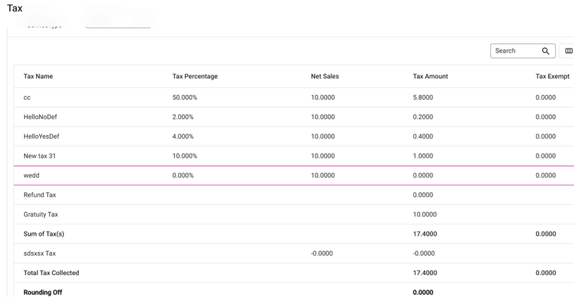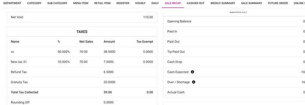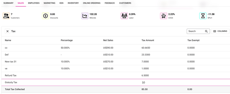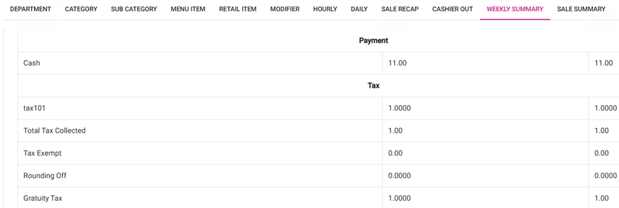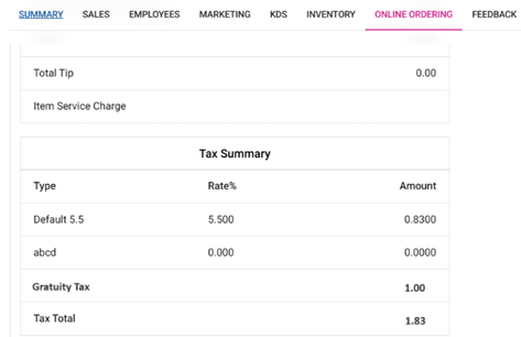 Note: Even if the Menu Item or different type of Tax is configured under Gratuity in BO, all the Gratuity Tax collected will appear as Gratuity Tax.