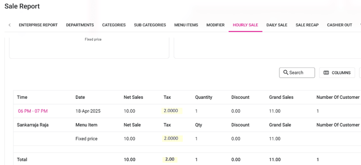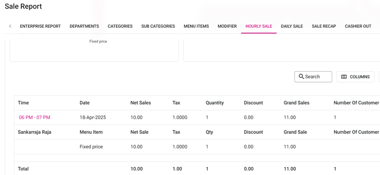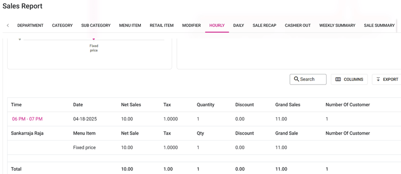 Hourly Sale Report
