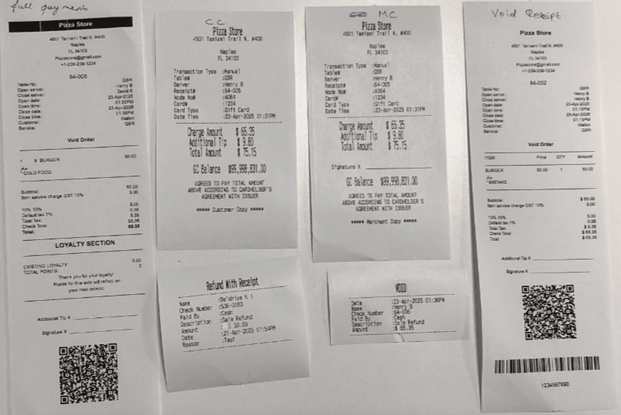 MC, CC, Void, Refund Receipts