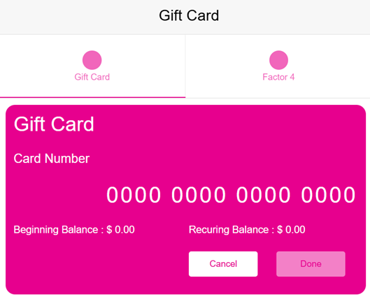 - Swipe the Gift Card on the Card Reader (if integrated) or manually enter the Card Number.