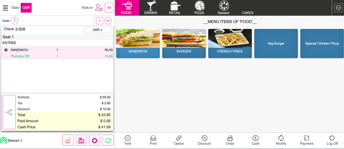 - Note: The Role of the logged-in user will still require the permissions to apply a selected Discount, such as a required Admin PIN.