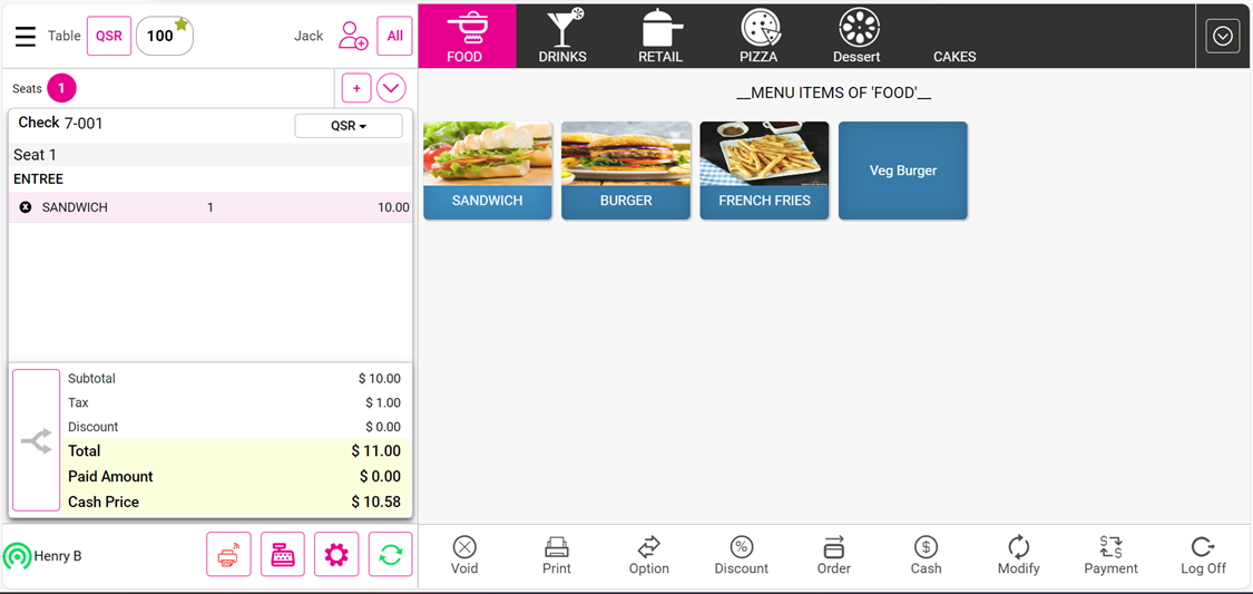 - On the Menu screen in POS, attach the Customer to the Order and add the Menu Item(s).