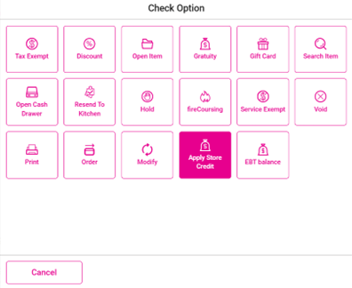 When applying Store Credit to a Check, a Customer must be added to the Check. If a Customer isn't added when attempting to apply Store Credit, a pop-up with the message 'Please attach customer to apply store credits' appears.