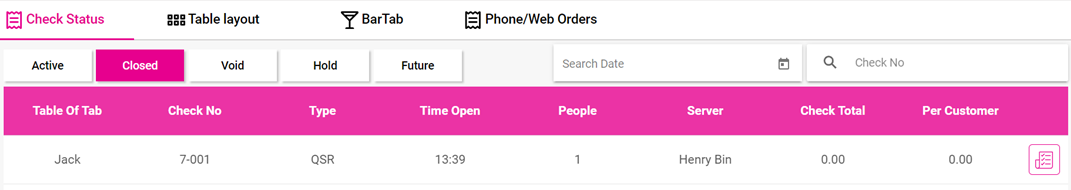 The Order Details will be available under the Check Status tab, under either Active, Closed, or Void sub-tabs.