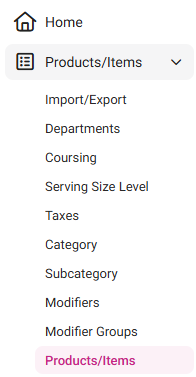 Navigation: Log into Back Office, then select Home > Product/Items > Product/Items