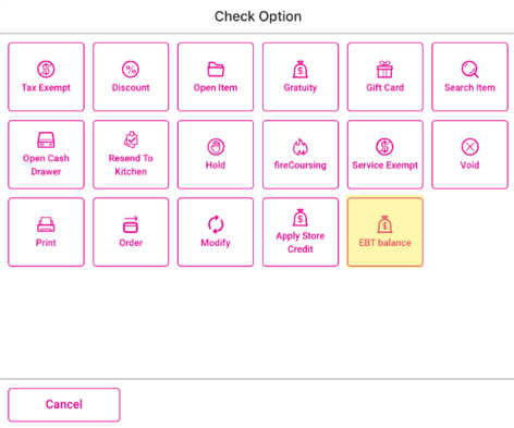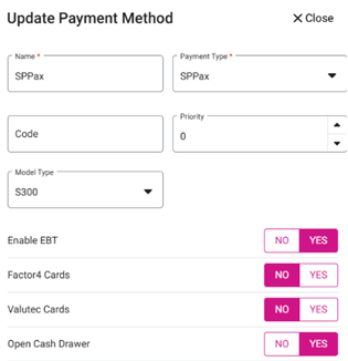 An SPPAX payment must be configured (with the EBT toggle enabled) in Back Office. For more information, see the Back Office Payment Methods Settings article.