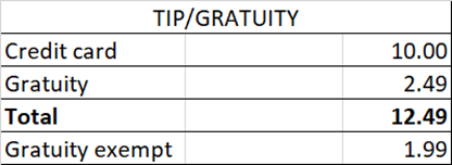 - Tool Tip: 'Gratuity will not be applicable for the Category'
