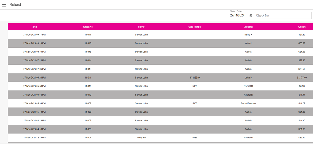The options Refund Menu Items, Refund Without Receipt, and Refund will all apply for Factor 4 check refunds.