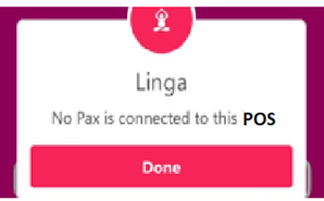 When no Pax is connected to the POS, a pop-up with the message ‘No Pax is connected…’appears. This scenario also applies to Balance Check.