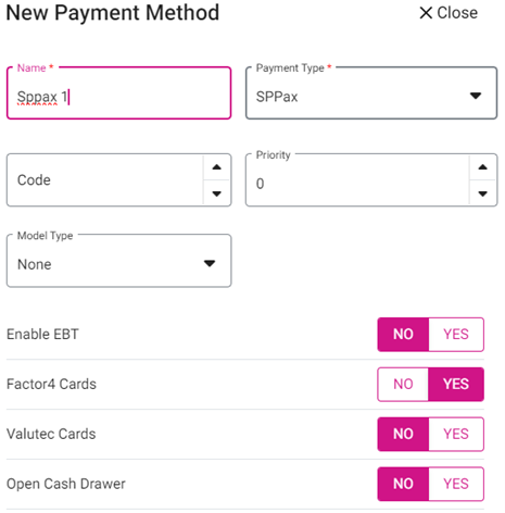 When creating a new Payment Method (or updating an existing Payment Method), for the Payment Type dropdown select SPPax.