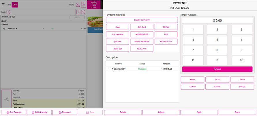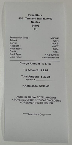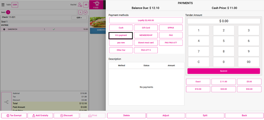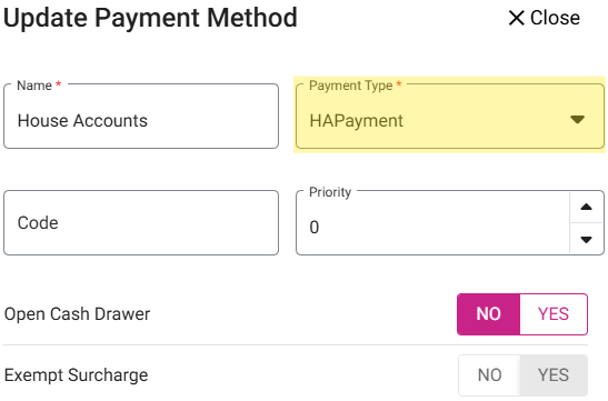 For the Payment Type, ensure HAPayment is selected.
