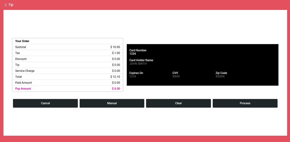 Select Process and the payment will be charged to the House Account.