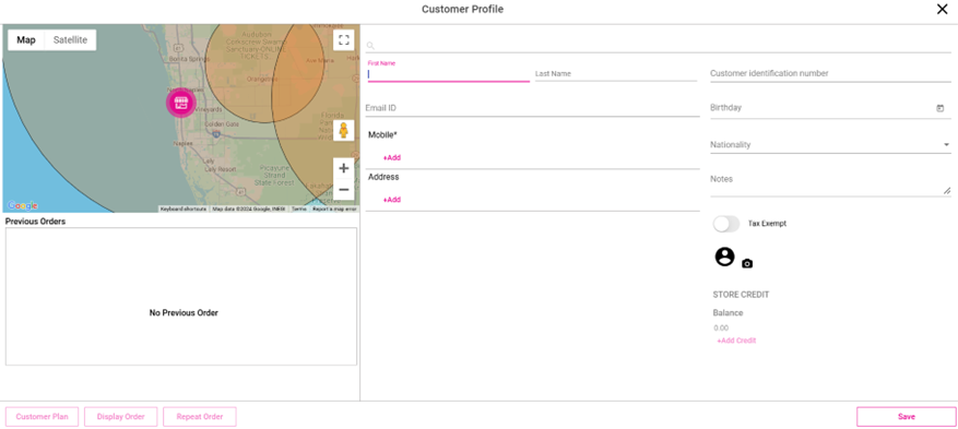 This will launch the Customer Profile page for the Loyalty program, where you can enter the new Customer's information - including Name, Phone Number, Address, and Email.
