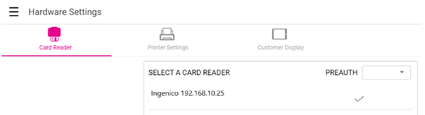 Under the Card Reader tab: all available devices will be visible under Select A Card Reader. Select the Ingenico device.