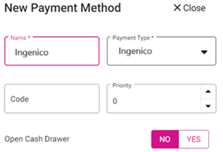 Note: Ingenico is an option only when the Ingenico Payment toggle is enabled from the Admin page.