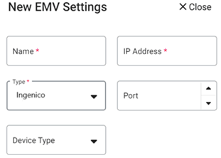 When creating a new EMV Settings: for the Type ensure Ingenico is selected, then configure the other mandatory fields.