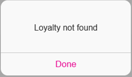 The pop up 'Loyalty not found'will auto-close after 5 seconds.