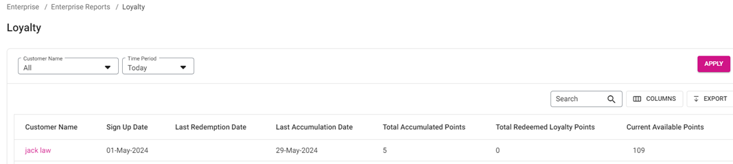 The total number of Loyalty Points will increase for every Sale made for the selected Customer who has redeemed the item-based discounts. (based on Enterprise Settings in configured in BO).