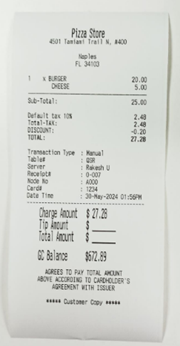 Note: Multiple Loyalty Discounts can be applied within a single Check for respective customer for different menu items.