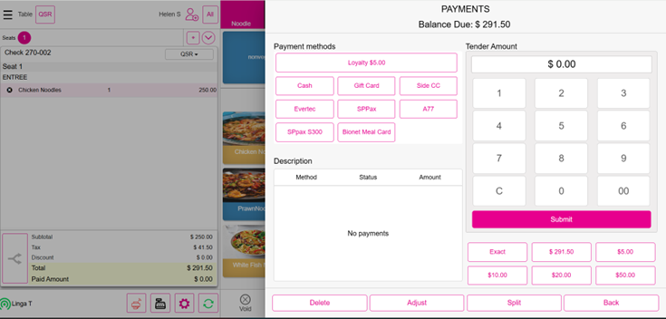 For a Customer that participates in the Loyalty program, the Loyalty payment option will be shown.