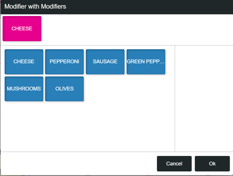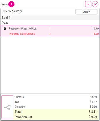 Upon clicking on any check number, in the drill down table the Parent Modifier Configuration will be reflected in Net Sale amount and tax need to be calculated based on the price and tax configured in BO. Also, the menu item and its Parent Modifier Configuration should be reflected in drill down table.