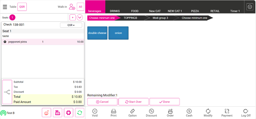 When the report is run, in the displayed reports the newly added Parent Modifier Configuration in BO should be reflected in Net Sale and tax need to be calculated based on the price and tax configured in BO. Upon clicking on any check number, in the drill down table the Parent Modifier Configuration will be reflected in Net Sale amount and tax need to be calculated based on the price and tax configured in BO.