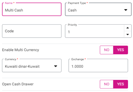 Multi Cash will be one of the Payment Methods to compete the Sale.
