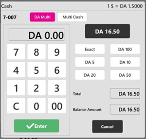 - Select Multi Cash, and the Cash pop-up appears