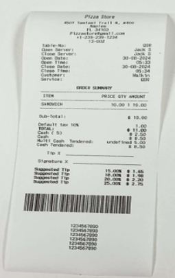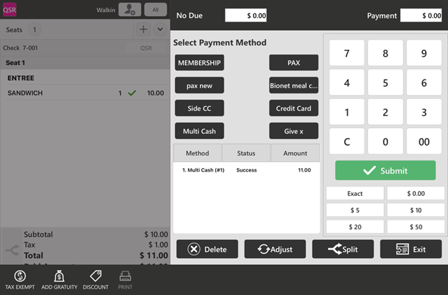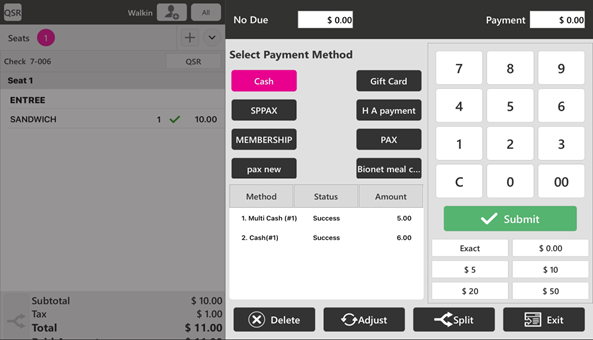 - Different Multi Cash payment methods from setting up Open Till will appear next to the Employee Name.