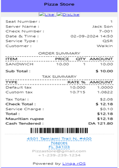If the paid multi-currency value is more than the Check, the remaining Change Due will appear in POS.