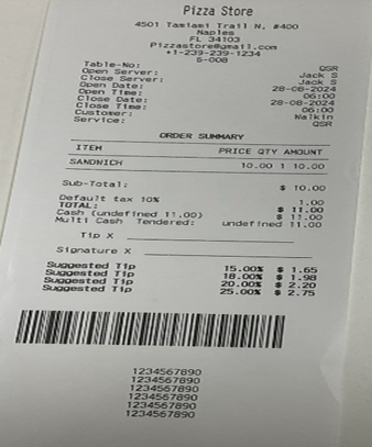Examples of Front End, Void, Refund, and Partial Payment receipts are below: