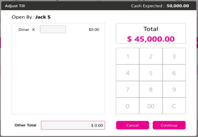 The Adjust Till will also display the same Multi Cash options in POS.