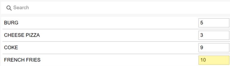 When the quantity of the French fries is increased to 10, then the corresponding Quantity will be reflected on the Menu screen.
