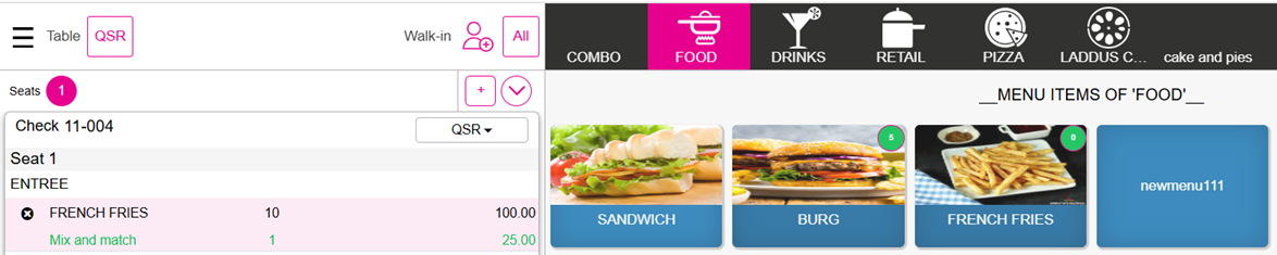 When the Quantity of French Fries is configured as 0 in POS, then on the Menu screen this Quantity will appear along with the Menu Item.