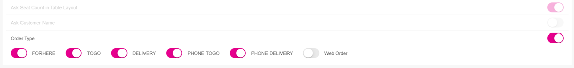 Enable Order Type - This section is used to define the behavior of the Order screen.