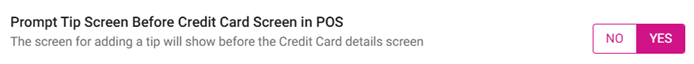 When set to NO, the system will not prompt to add a tip before the credit card payment screen.