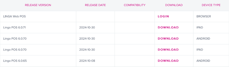 Click Download, and the Download screen appears, with a history of Release Versions available.