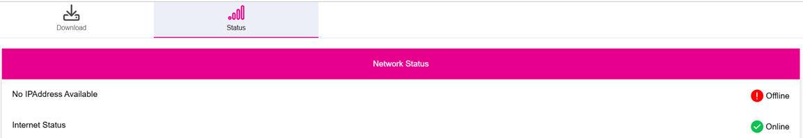 Internet Status - Indicates whether internet connectivity is Online or Offline.