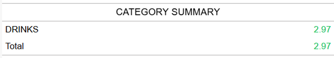 This displays the amount of sale made from each and every Category - with the Total from all Categories' sales at the bottom. This section will only appear when the Category Summary toggle is enabled in Sale Recap Report Settings in BO.