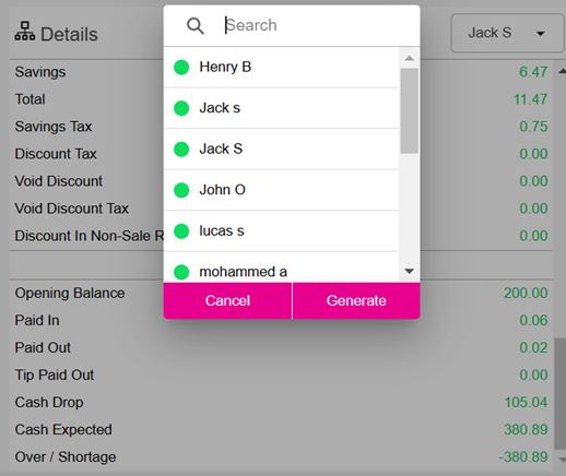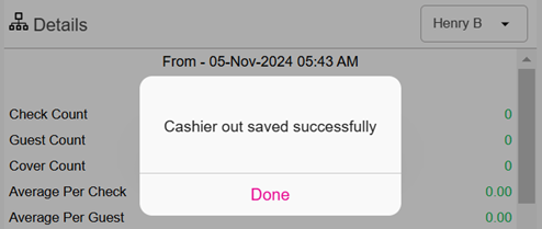 - Once a Cashier is selected, the Cashier Out button will be enabled.