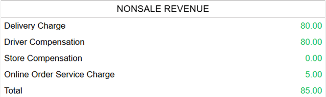 The Non-Sale revenue includes Gift Card Sold/recharge, House Account Sold/recharge, Delivery Charge Cost, Membership Sold/Recharge, Gratuity and Online Order Service Charge along with its Total amount.