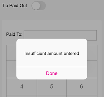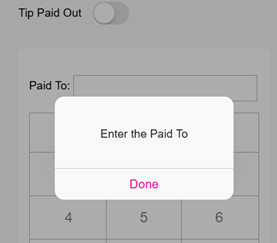 appears. - If there are un-tipped cc transactions: the warning message 'You have <count> Un-Tipped CC Transaction(s)' with an exclamation mark