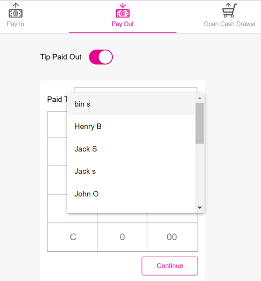 Note: Only employees with the proper role and permission settings have access to Cashier Out.